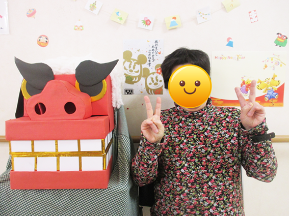 ▼令和8年1月15日(木)に、新年会を開催しました!健康を祈念して獅子舞と一緒に記念撮影をしました♪